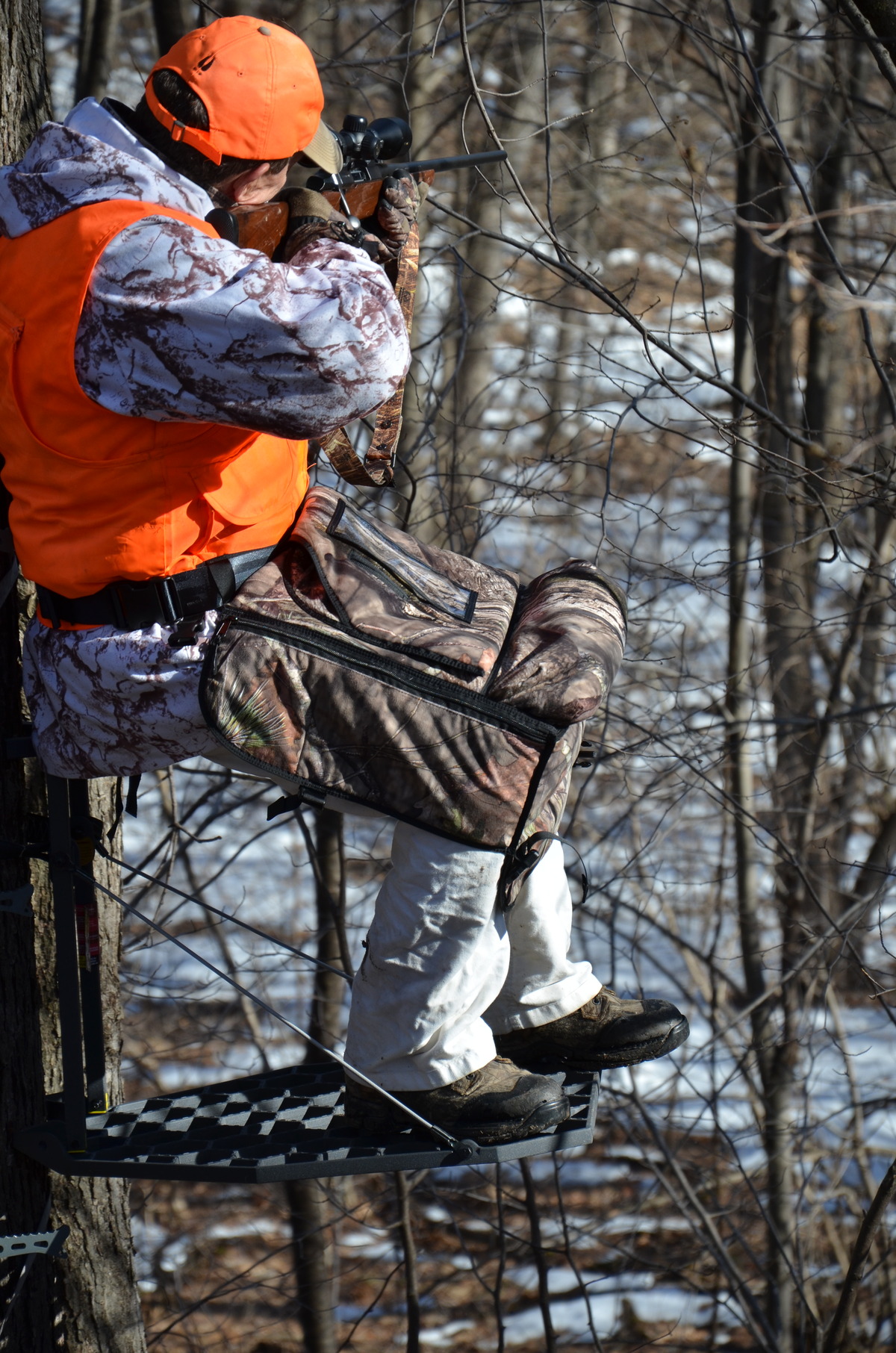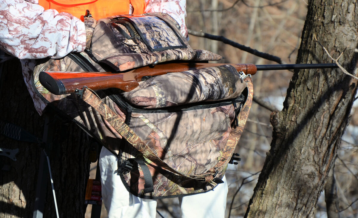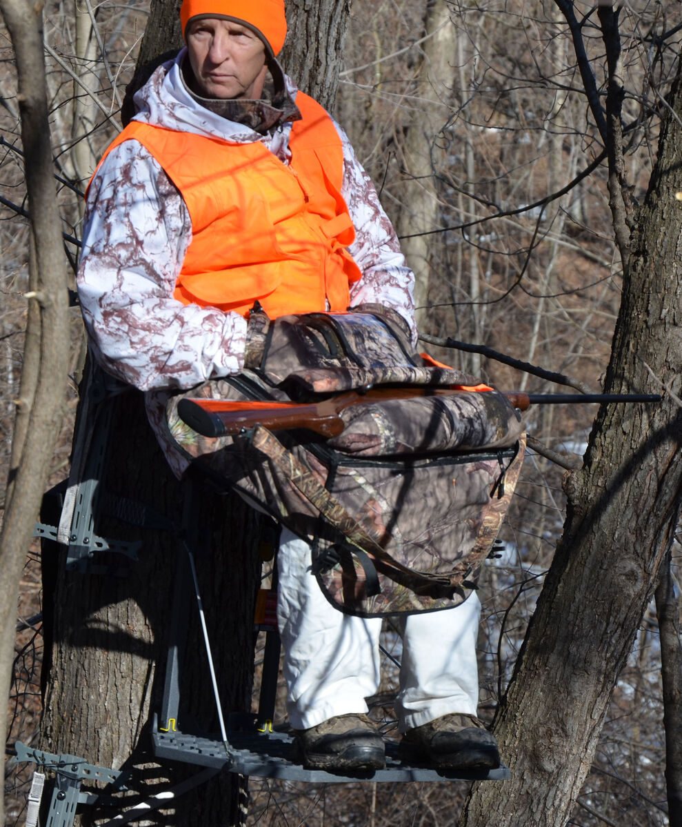 Resting a cold, heavy rifle or bow on your lap is no longer uncomfortable. The padded top provides insulation and comfort, while the equipment guard across the knees keeps your rifle or bow secure and right where you want it.